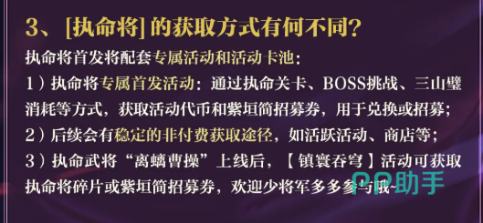 在战斗机制层面,执命将引入专属资源体系:除常规战意外,新增“执命值”作为核心驱动。该资源可通过技能命中、回合推进、敌方减益触发等多种方式累积,满值后可释放唯一性“执命技”。各执命将的执命技在发动条件、效果类型(如爆发伤害、状态反转、全队增益)及冷却节奏上均差异化设计,杜绝模板化使用。