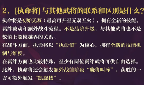 “执命风物”为另一大特色系统。当执命将装备指定风物时,将解锁专属附加技能效果。该效果严格绑定具体武将与具体风物组合,不可跨角色通用,强调个性化养成深度。品质方面,所有执命将初始即为无双品质,最高可升至无双五火。需明确说明的是,该品质定位侧重机制拓展维度,并非数值碾压型设计,与其他武将在基础强度上保持平衡关系。