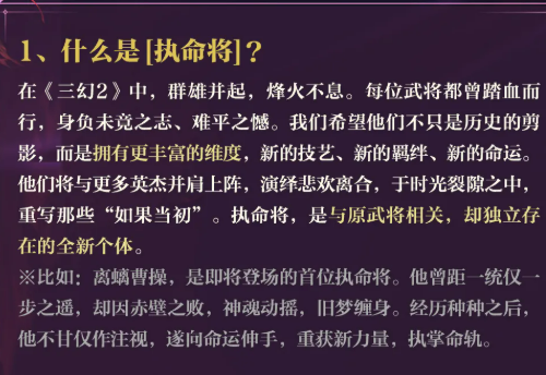 执命将系统的推出,标志着《三国志幻想大陆2·枭之歌》在角色塑造维度迈入新阶段:以故事驱动机制革新,以机制反哺叙事厚度。离螭曹操作为首例,仅为序章;未来将陆续揭晓更多武将的执命形态,持续拓展游戏世界观与策略纵深。