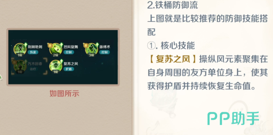 另一种可行发展方向为防御流医官。该流派更注重护盾机制与战场保护能力。起手技能推荐“复苏之风”,不仅能为队友施加吸收伤害的护盾,还能在护盾存在期间提供持续生命回复,实现双重防护效果。与此同时,“烈风玄武”依然建议携带,因其仍是医官为数不多的稳定法术输出来源,不可完全舍弃。