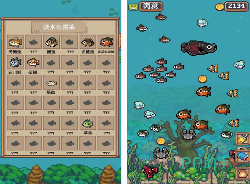 作为模拟钓鱼的小游戏,它与大家熟悉的最主要的区别就是,采用像素的风格进行设计。不过玩家依旧能成为游戏中的钓鱼者,为了顺利的将鱼儿钓上来,要使用特制的饵料,在顺利的将鱼儿钓上来以后,可通过将其售卖的方式,帮助玩家获得超高的收入,也能将鱼放到鱼缸里面,享受养鱼的乐趣。通过解锁的更多图鉴,帮助你获得成就感。