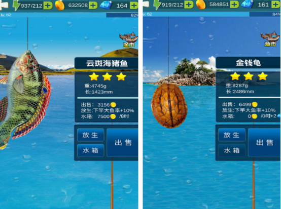 此休闲的打鱼游戏,收录了百种鱼类,也是以闯关的方式进行体验的。在模拟钓台中,你要及时的观察浮标,这样能顺利的钓到鱼儿。完成闯关以后,你还有机会解锁神秘的鱼种,顺利将鱼儿钓上来以后,既能选择养殖起来,也可进行售卖。相对于单纯的钓鱼手游,之所以说会展开一段冒险,是因为还新增了很多的玩法,比如钓鱼比赛。