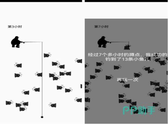 这款钓鱼游戏,以老爸这种身份展开钓鱼,除了里面的鱼儿,都采用的是黑色的风格进行设计,就连里面的老爸也是如此,属于设计比较简约,风格很独特的。需要在钓鱼的过程中,通过看准时机的方式,完成钓鱼,考验玩家的耐心。因为在鱼儿开始游动的时候,等待的时间越长,聚集的鱼儿也会越多,看到很多鱼群,点击钓鱼就能帮助你获得很多的鱼儿。