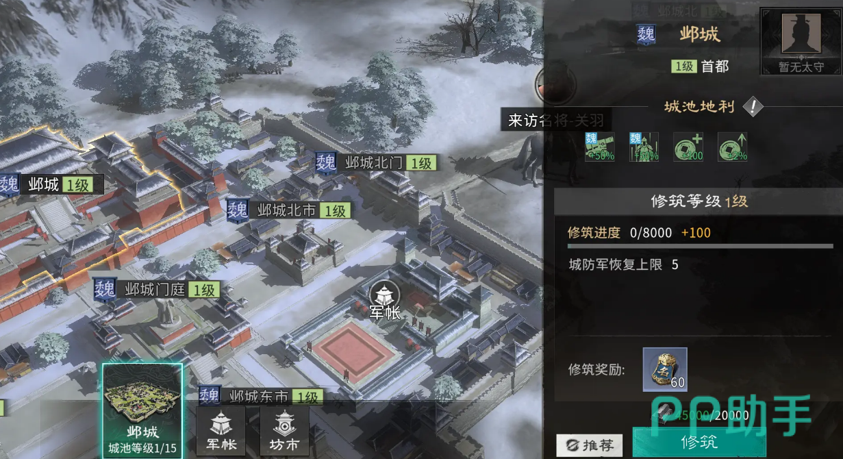 游戏初期,玩家需从魏、蜀、吴三大势力中择一加入。每个阵营具备独特的战略定位:魏国以谋略见长且综合实力强劲;蜀国拥有出色的战斗能力,适合偏好正面交锋的玩家;吴国则专注于水军发展,防御优势明显,利于长期防守作战。选定阵营后,便正式开启你的征战之路。