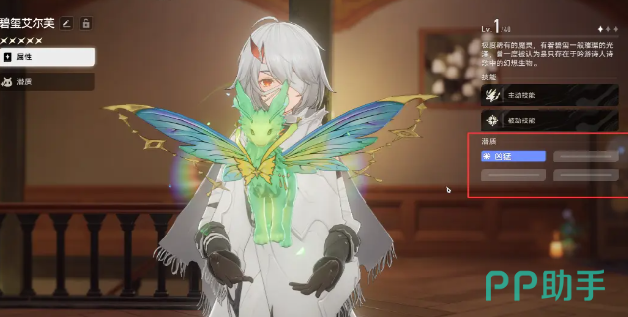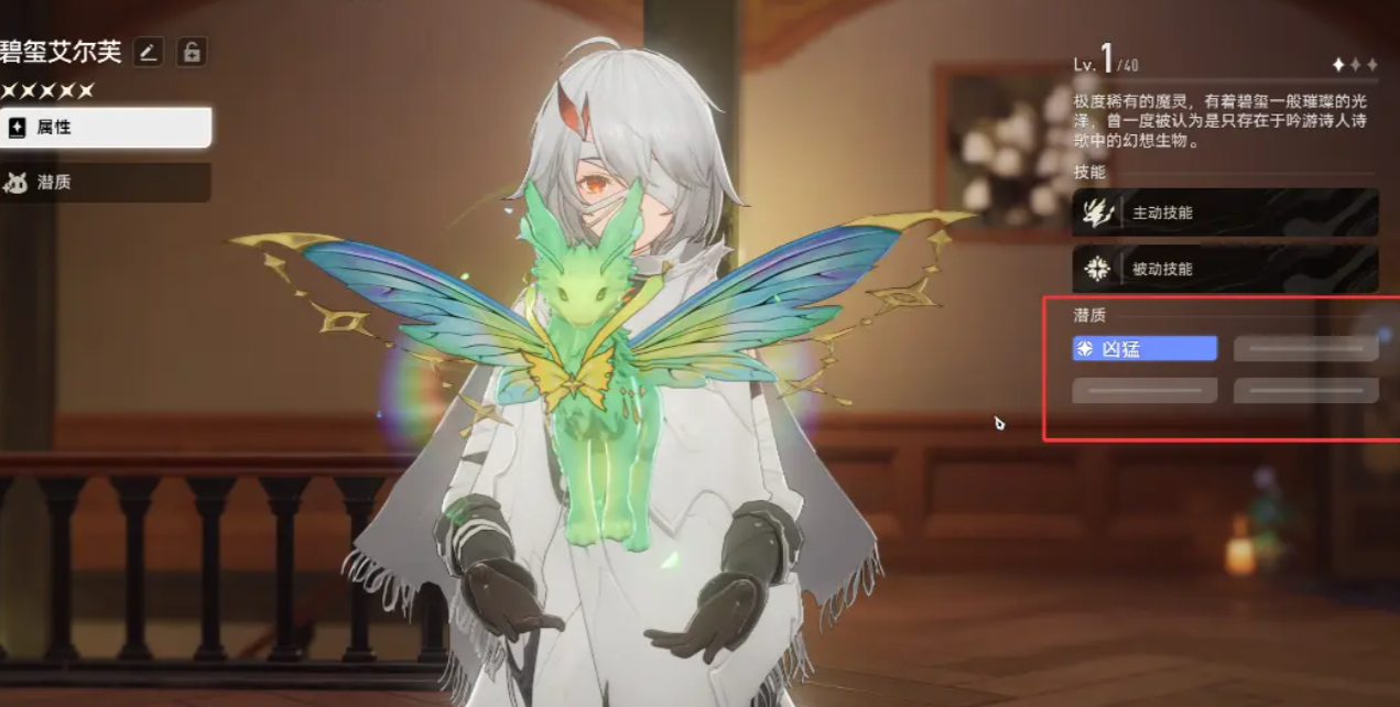 目前风属性战斗型魔灵中的佼佼者,碧玺艾尔芙具备强大的辅助输出能力。被动技能可提升自身及协战队友2.4%风属性攻击力;主动技能可在12秒内为附近队友提供6%背水增益,并在主角色生命值低于25%时自动为其恢复生命,兼具攻防支援作用。