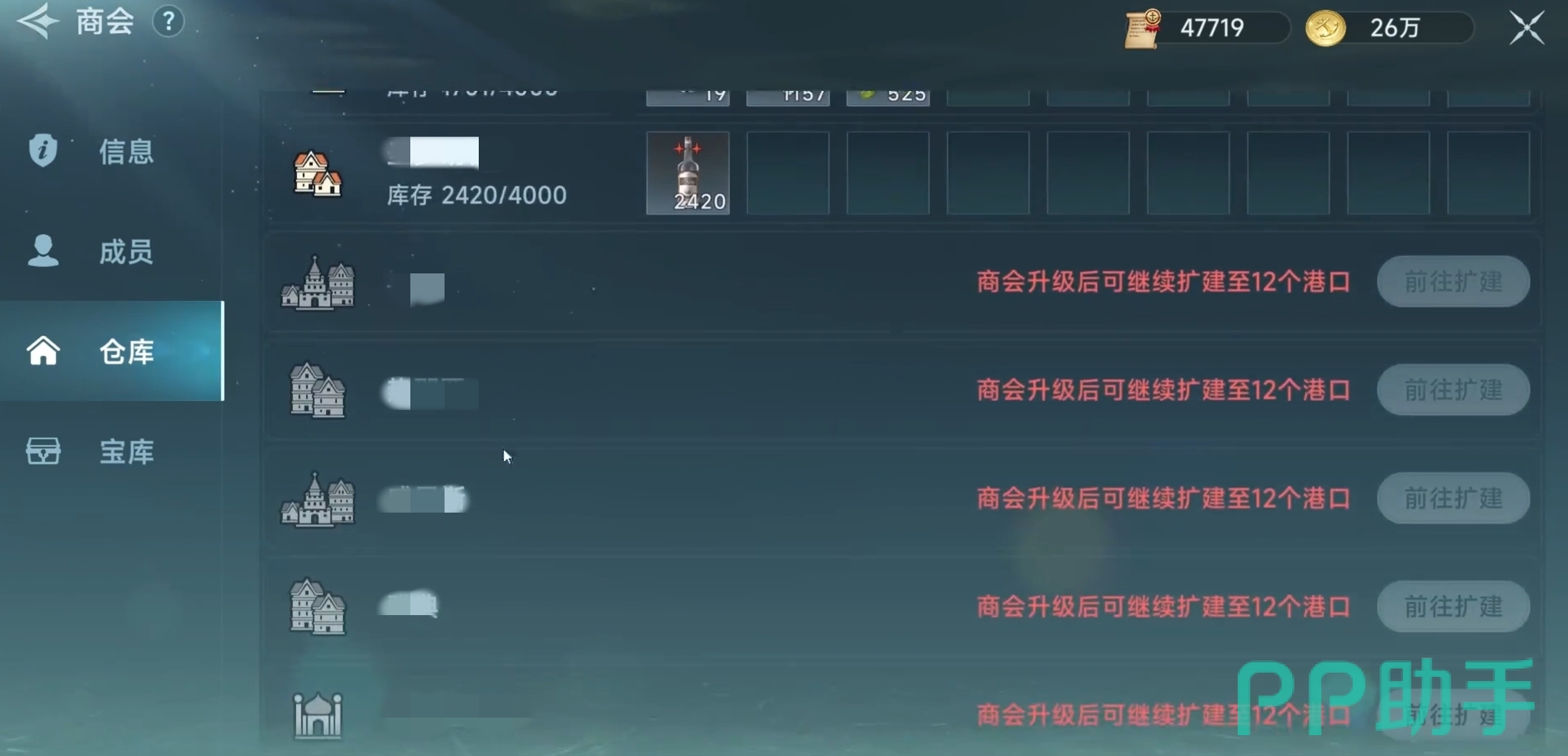 但要注意,商会仓库并非是一开始就有很多的,而是会在商会升级后逐步扩建到各个城市。玩家们也只能在已经扩建了商会仓库的城市来使用仓库功能,未扩建的仓库的城市则没办法打开仓库,这也使得商会的升级对每名玩家来说都非常的重要。