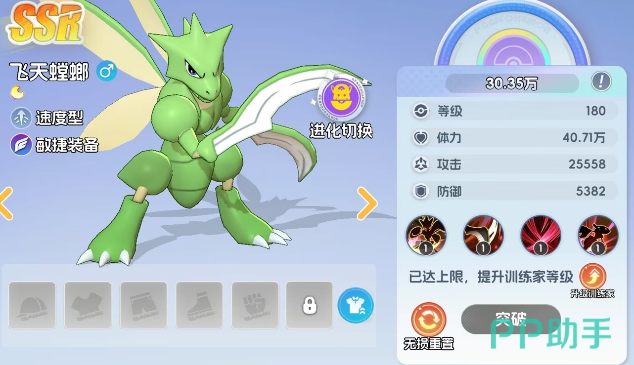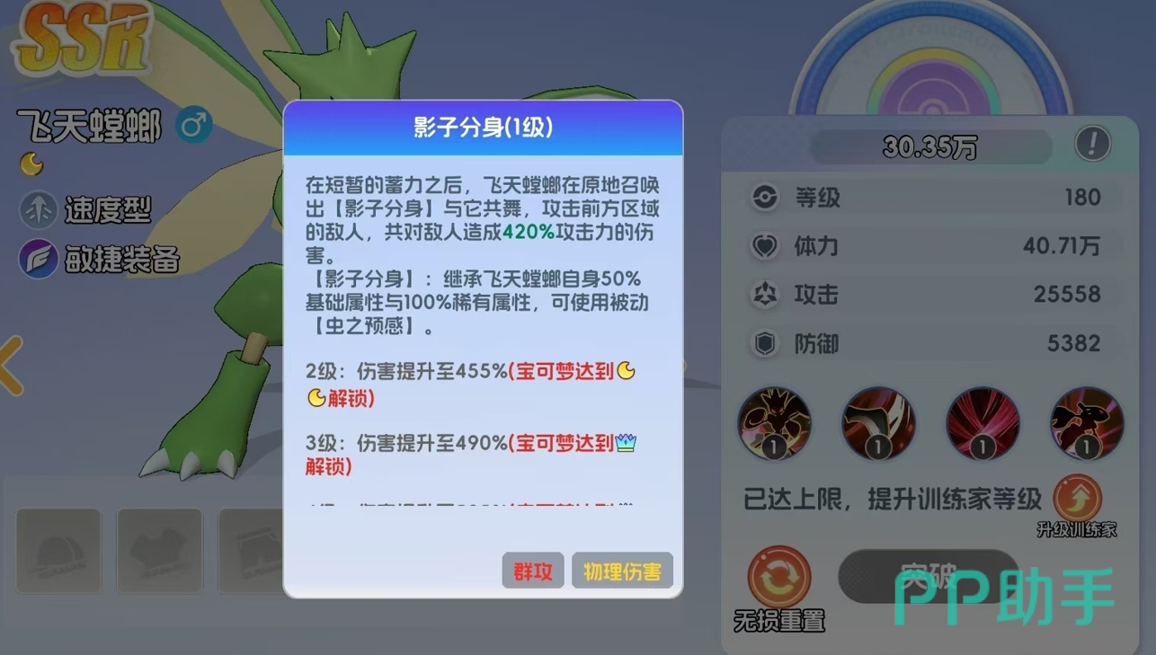 在《宠物集结》这款游戏中,飞天螳螂作为一只SSR品质的宝可梦,虽非SP稀有度,但凭借其鲜明的机制设计与高适配性,在实战中展现出极强的战术价值。许多玩家可能因初始获取门槛较低而低估它的潜力,实际上,合理培养与搭配后,飞天螳螂完全能承担核心突击手的职责。