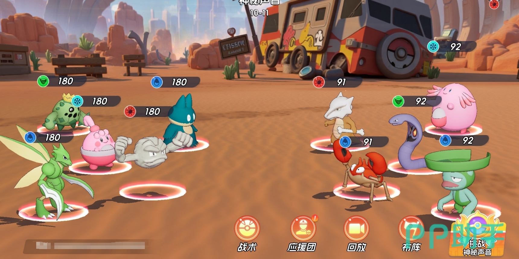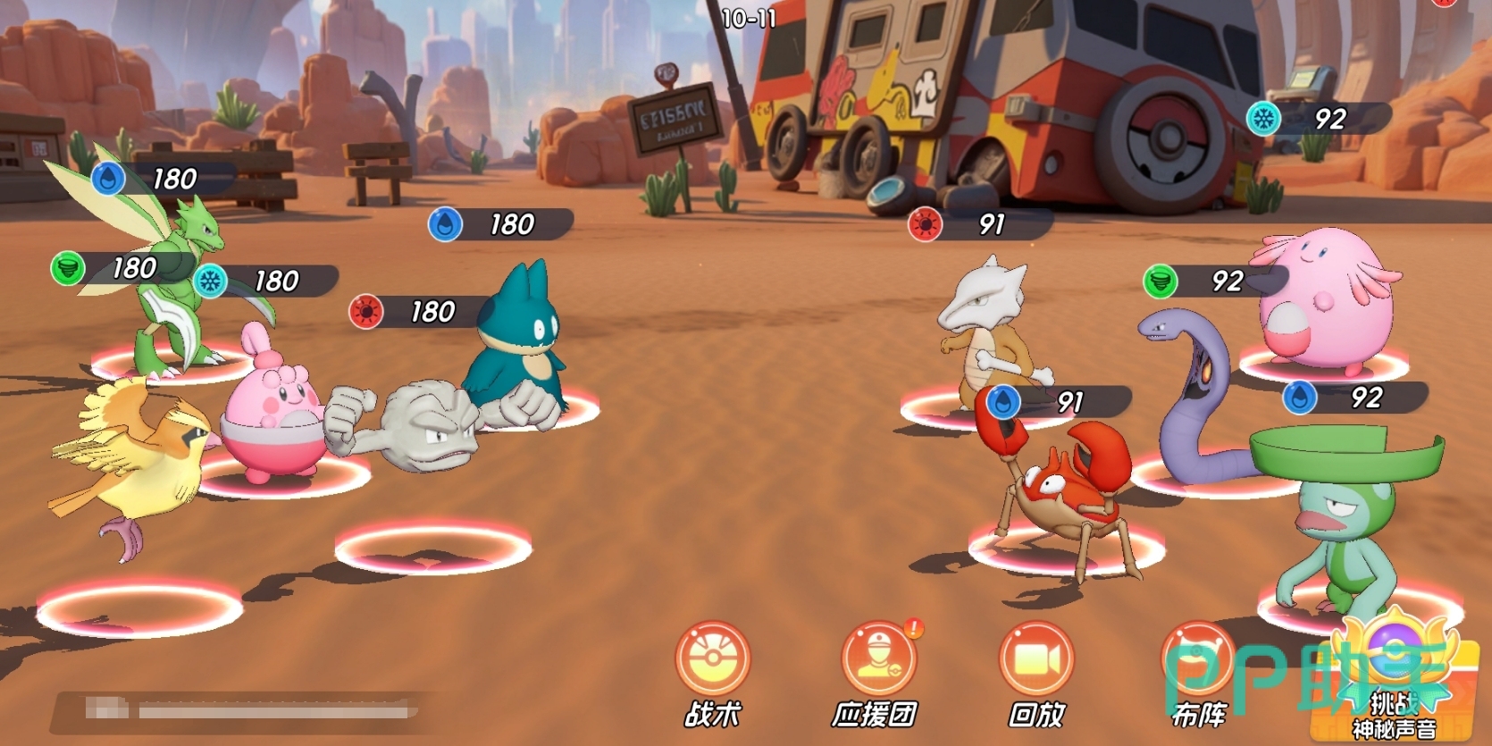 若玩家尚未培养其他速度型宝可梦,亦可采用“速攻+法系补刀”思路进行变阵。例如以前排小卡比兽、小拳石构筑防线,中后排配置可达鸭或刺球仙人掌等高伤法师,由飞天螳螂先行切入打乱敌方阵型、吸引火力并制造输出窗口。即便飞天螳螂在突进过程中被反制交换,其牵制效果已为队友创造关键输出时机,整体战术收益依然可观。