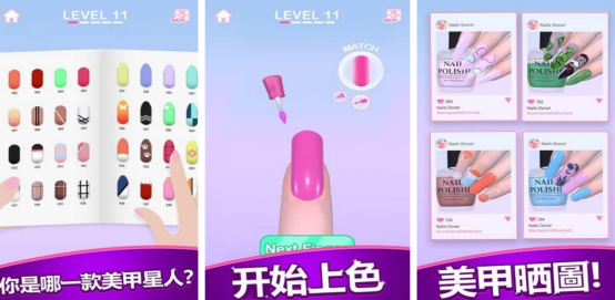 将美甲以及换装的玩法相结合,玩家可以发挥自己的想象力,还可按照自己的审美为其中的角色进行搭配。这里所涵盖的指甲油类型以及各种配饰,应有尽有。不论是新手玩家还是专业的美甲,玩家都可以在这里打造出独具特色的指甲造型,还提供了新手教程以及具体的规则。玩家在完成了相应的任务之后,就可解锁更多道具获得丰厚奖励。