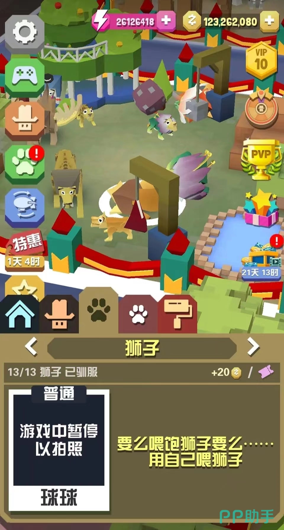 第二个是狮子,算得上是丛林里面的霸主,力气非常大,它的攻击能力非常厉害,并且还可以利用咆哮技能来对敌人进行攻击,这样敌人就会陷入到危险之中,而且也可以利用自身的撞击和跳跃等方法来与动物竞争,狮子在游戏里算是强大的一个动物了。