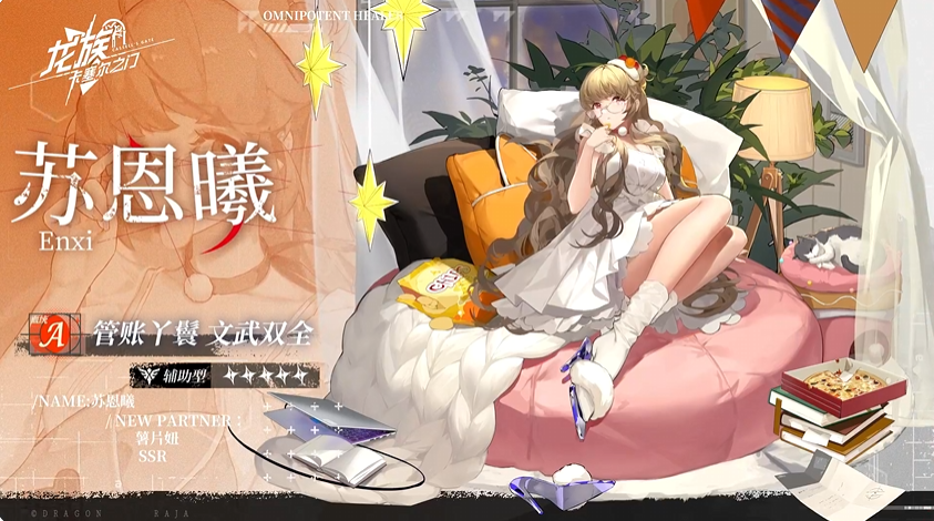 《龙族:卡塞尔之门》中人气辅助角色“苏恩曦”,因角色设定中极具辨识度的零食偏好——酷爱食用薯片,被玩家亲切称为“薯片妞”。该角色为土属性SSR稀有度单位,定位为团队核心治疗与净化型辅助,在实战中承担维系队伍持续作战能力的关键职能。以下将围绕其技能机制、成长路径与实战价值展开系统解析。