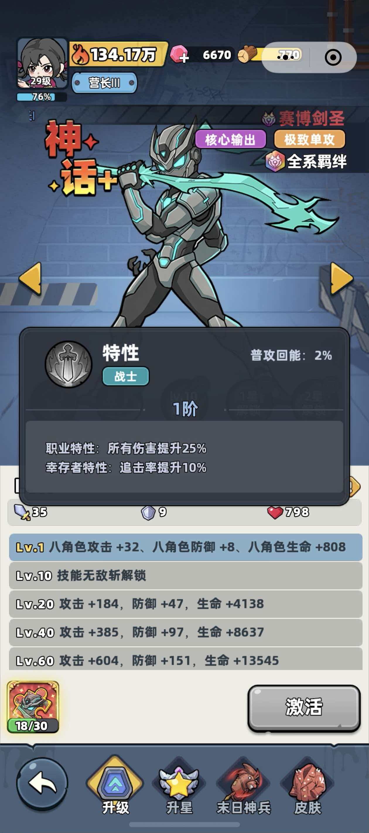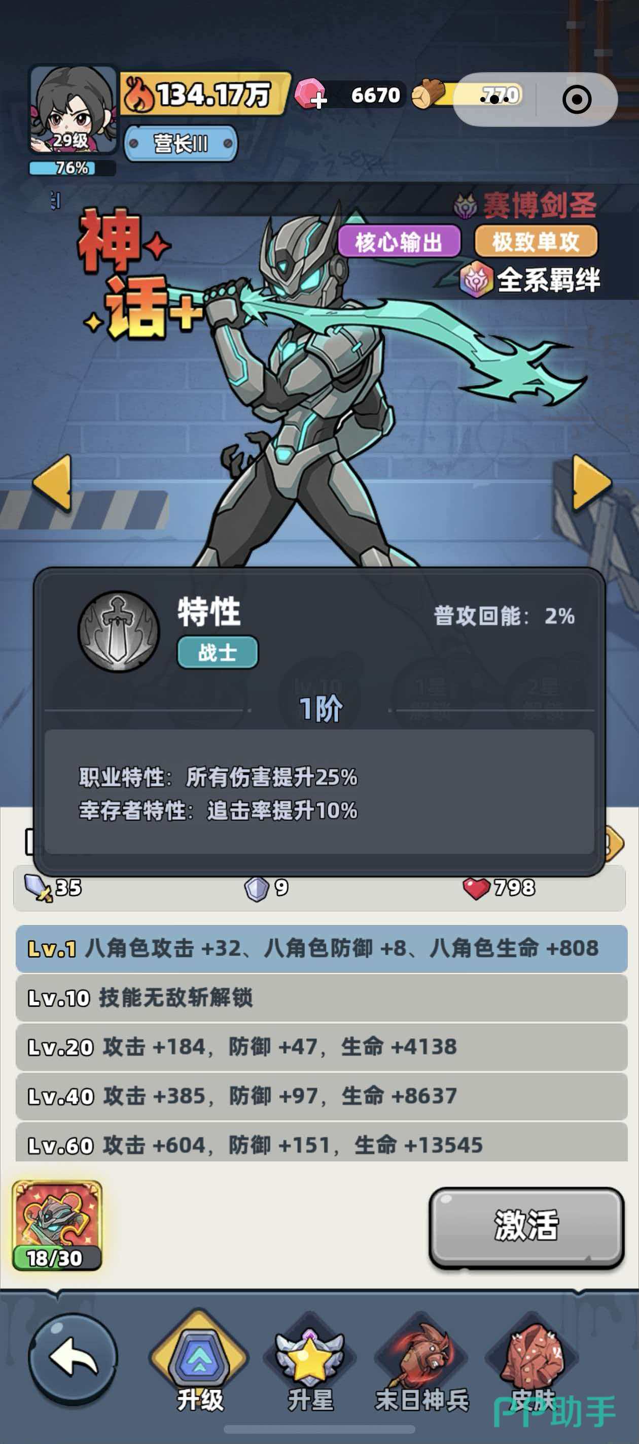 在《生存33天》这款硬核生存向策略RPG中,赛博剑圣作为高稀有度的神话+阶角色,定位为纯物理系单体爆发核心。不同于传统游戏中“剑圣”常因机制陈旧或数值疲软而沦为边缘角色,本作中的赛博剑圣凭借独特的技能逻辑与全系兼容性,在当前版本中展现出极强的实战统治力。