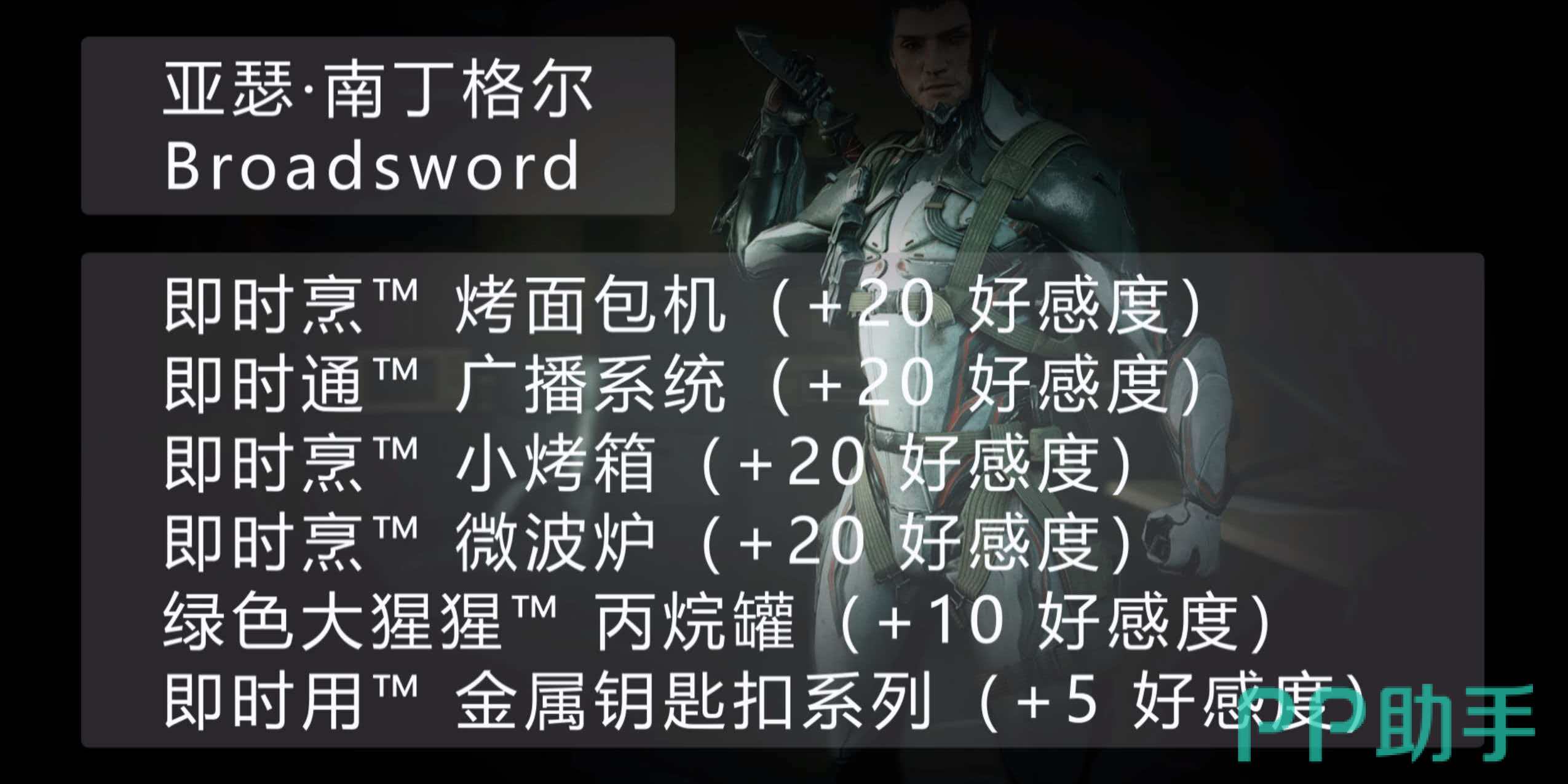 亚瑟偏好厨房电器与基础生活设施,烤面包机、小烤箱、微波炉三者均可带来20点好感度增长;广播系统同样具备同等效果。丙烷罐可增加10点,金属钥匙扣则为5点。该角色礼物池结构清晰,建议按20点→10点→5点梯度分批使用,最大化单位道具价值。