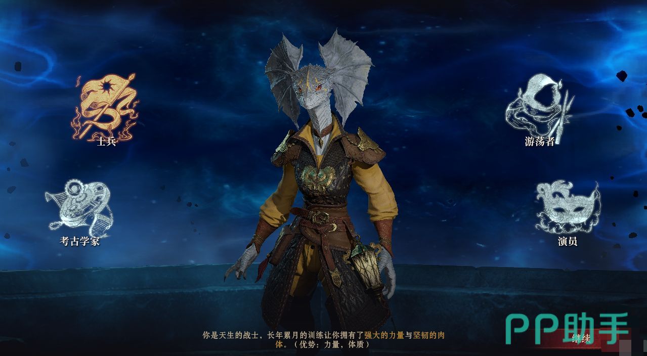 目前游戏内主要的身份只有四种,考古学家和士兵,游荡者和演员,每种身份带来的属性优势都不尽相同。考古学家的属性优势主要体现在脑力方面,感知和智力这两个属性上会有一定程度的提升。
