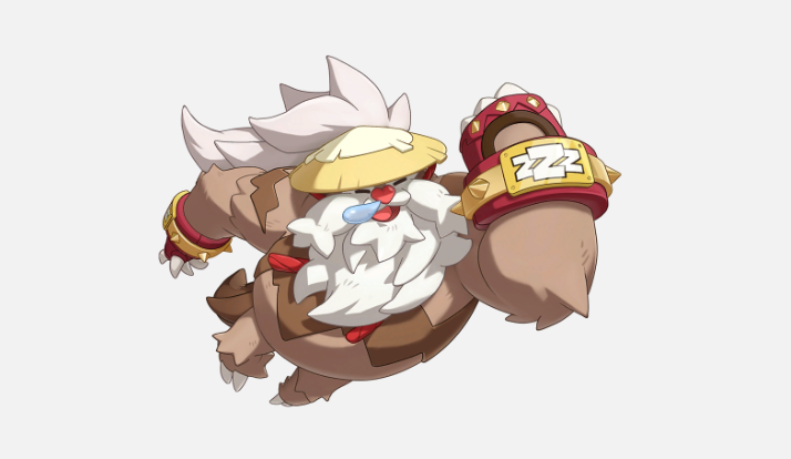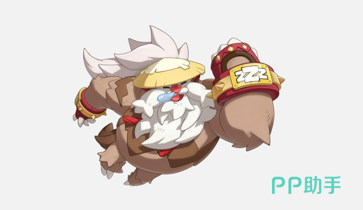 属性:普通+武系。体型魁梧,常处于深度睡眠状态,鼾声是判断其行动状态的主要依据。“慢热型”特性使其登场时初始能量为0;在入场前,己方其他精灵每成功应对一次敌方行动,即可为其累积5点能量。
