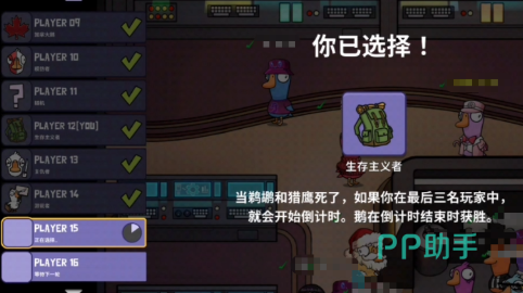 总结来看,《鹅鸭杀》中的生存主义者并非靠操作取胜的角色,而是一种依赖时机与策略的终局型身份。想要发挥其真正作用,必须放弃主动出击的想法,专注于自我保护与局势观察。只要能安然度过前期与中期,等到鹈鹕和猎鹰双双出局且场上仅剩三人时,胜利便会自然到来。掌握这一节奏,你就能在不费吹灰之力的情况下,带领好人阵营走向胜利。