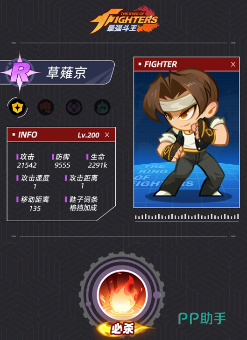 除八神庵外,草薙京亦是东丈的理想搭档。作为经典格斗IP代表角色,草薙京拥有高于东丈的基础攻击力,虽初期防御与容错率略低,但随等级成长,其小范围AOE物理伤害、生命值及格挡率将同步提升,显著增强团队整体续航与压制能力。玩家可根据已有角色池灵活调配,优先选择机制互补、资源投入回报率高的组合方案。