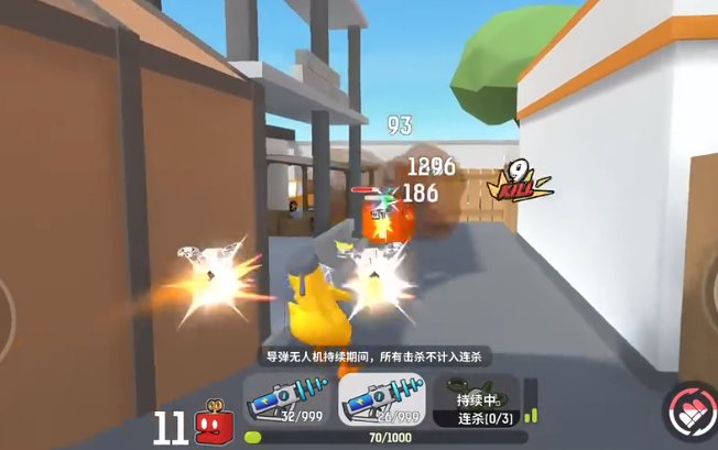 核心战斗围绕两大系统展开:多样化卡通枪械与智能空中支援飞机。所有枪械均保留真实弹道逻辑与性能参数,但外观经过趣味化重绘,如鸭子造型冲锋枪、企鹅涂装狙击步枪等;而“飞机”作为关键战术道具,无需手动操控——玩家仅需点击道具栏即可激活。激活后,飞机将自动环绕角色飞行,并在敌方进入预设半径(约12米)时发起精准轰炸,覆盖范围显著大于常规枪械射程。初始对局系统赠送1架免费飞机,后续需通过观看激励视频广告获取,单次持续时间为15秒。