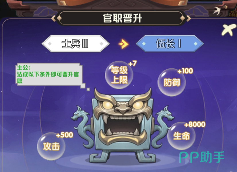 尽管游戏世界观为架空设定,但所有武将均严格取材自真实三国时期人物,立绘与技能设计兼顾考据性与策略深度。官职晋升并非线性任务制,而是与玩家实际战力表现强绑定:每成功通关指定章节关卡,即可获得对应功勋值与声望积分,累计达标后自动触发升职流程。这是当前版本中唯一稳定、可复现的官职成长主轴。