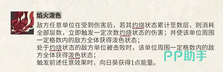 向日葵的绝技“炽烈灼燃”让她的输出更加凶猛。在使用这个技能时,自己和周围的队友将进入“烈阳”状态,提升伤害输出。而且每当你攻击敌人并造成非持续性伤害时,敌人会被灼烧,灼烧效果能叠加,最多可堆叠五层,每一层灼烧都会带来20%攻击力的构素伤害。这个技能使得向日葵不仅能够提供强大的持续输出,还能带来有效的敌人减益效果,让敌人身处高压之下。