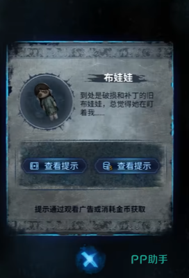 带着剪纸小人返回屋外走廊,点击走廊左侧的楼梯标志,在道具栏中选择剪纸小人,可以解锁二楼区域,登上二楼可以获得箱上谜题,然后根据方块左下角线索点击对应方块,将图案拼成一个红色十字,完成拼图后,打开医疗箱,获取医用钳和另一面锦旗,在二楼走廊点击中间的办公室木门,在办公室内点击显示屏右侧台灯下的书,从中获取关键线索,之后点击墙上空白处,将之前获得的两个锦旗挂在墙上,重新排列锦旗顺序就可以打开停尸柜,最终拿到布娃娃。