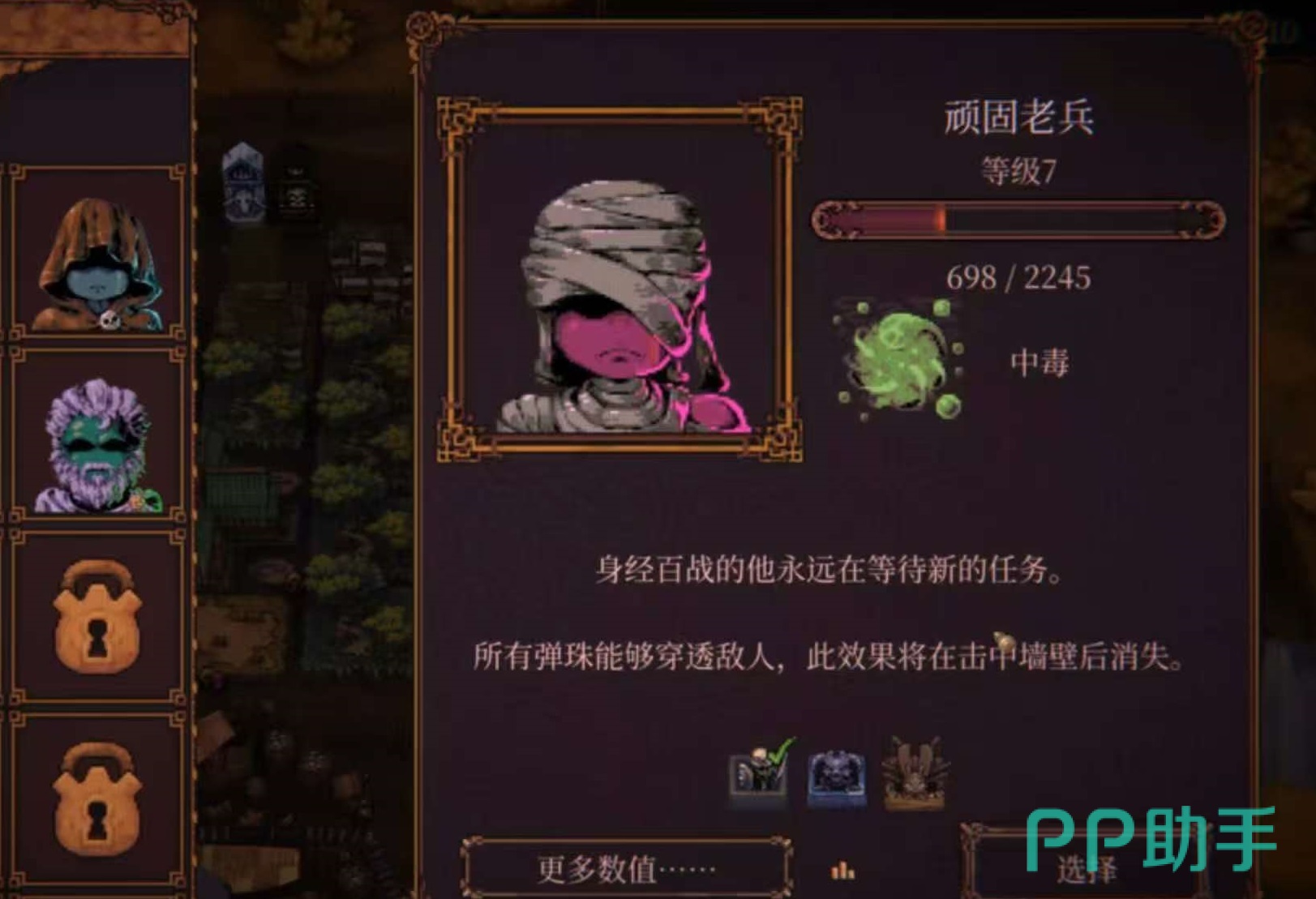 第二位强势角色:顽固老兵。该角色拥有双重物理特性——弹珠具备完全穿透效果(无视敌方数量叠加减伤),并可在碰撞障碍物后以固定角度反弹一次。此机制使其清屏效率极高,在面对高密度小怪群或带护盾精英单位时,单次射击即可覆盖多个目标,配合高基础生命值与减伤被动,成为新手过渡与高难速通双场景下的稳定选择。