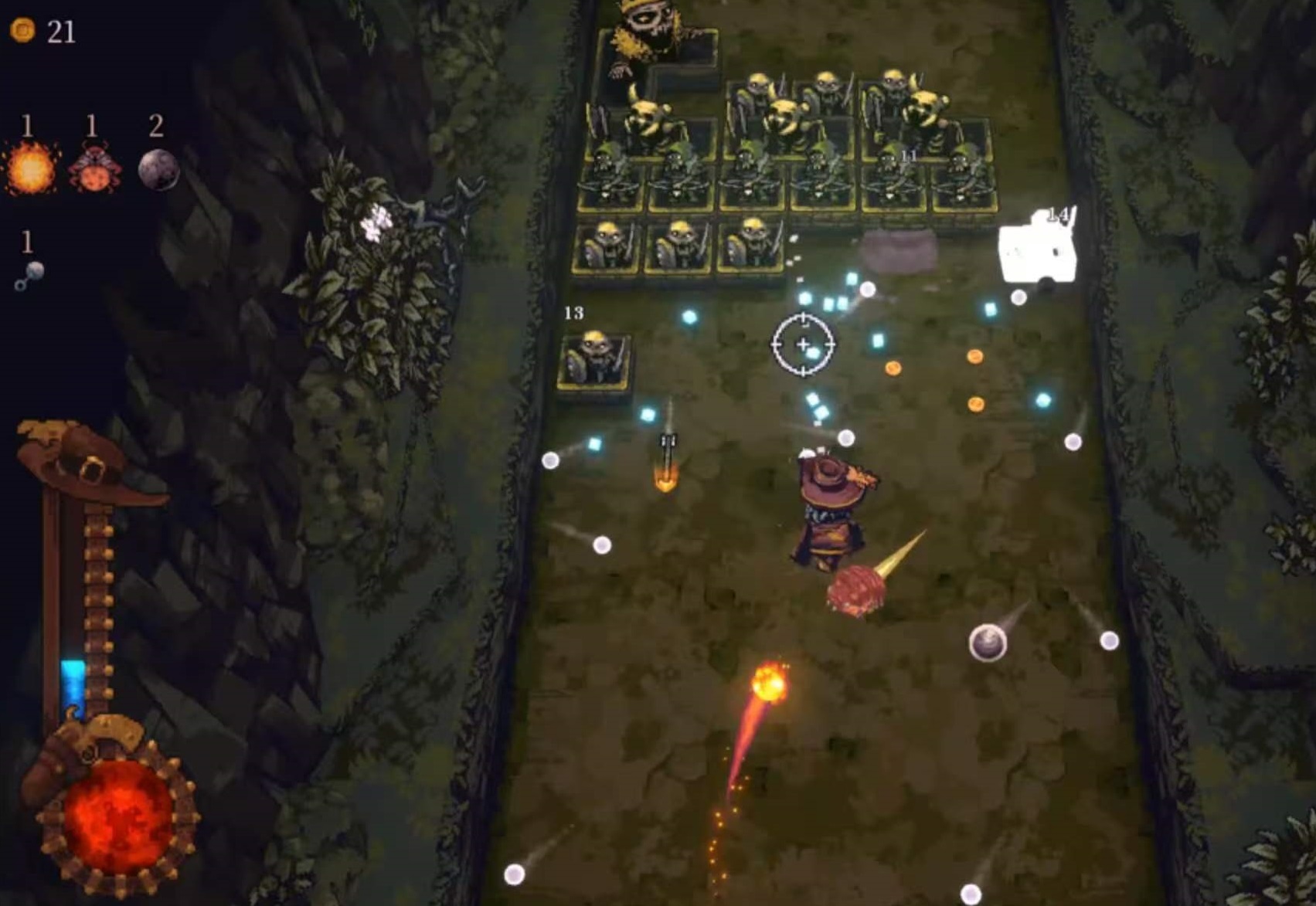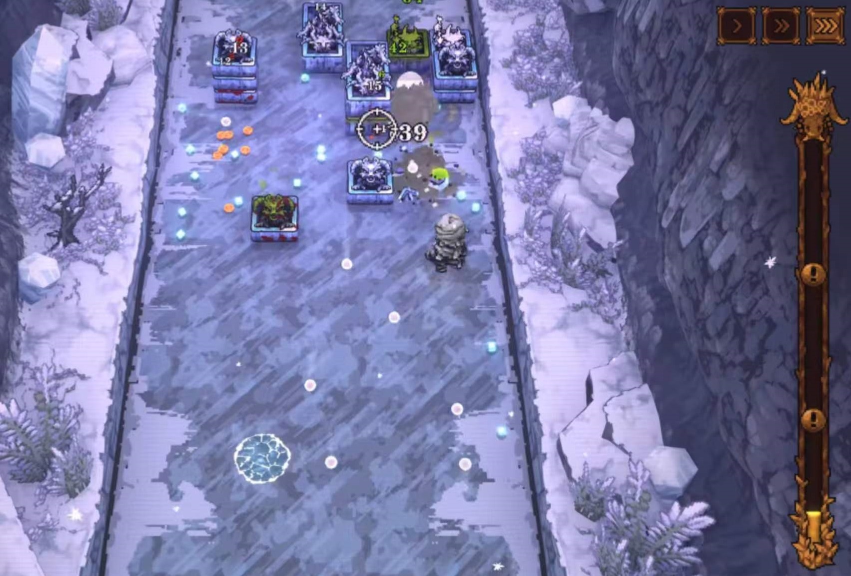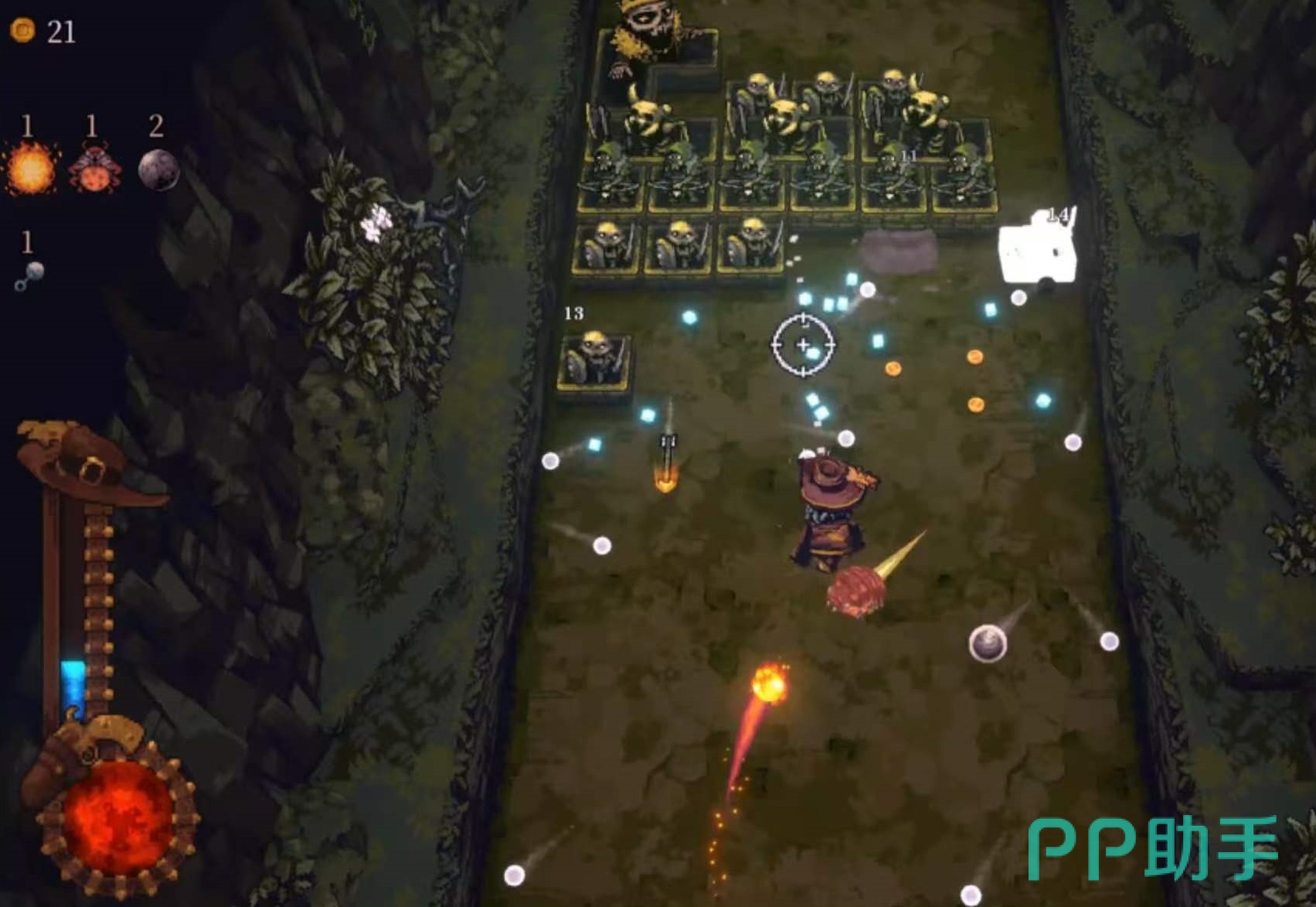 第三位关键角色:鞭策者。其独特机制在于角色底部生成不可见反弹平面,所有向下飞行的弹珠均会以此为基准进行弹性反射,形成持续循环弹道。在合理站位下,单次攻击可触发3–5次有效命中,总DPS在中后期装备成型后稳居全角色前三,尤其适配高攻速流派与弹珠分裂类词缀体系。