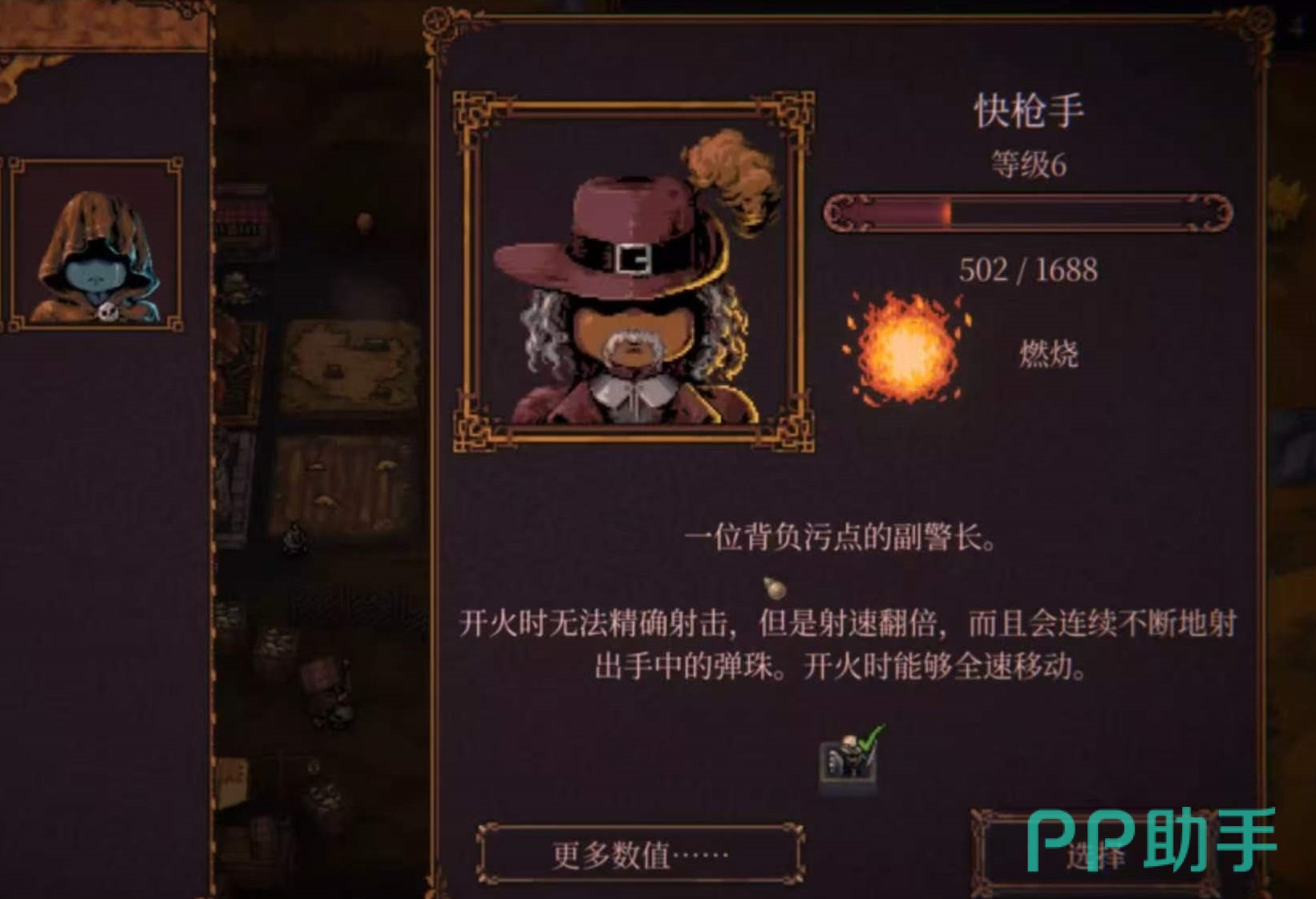 首位推荐角色:警长。该角色定位为高速机动型射手,基础攻击模式为连续发射大量低伤害弹珠,射速为全角色最高档位(+100%),且移动时完全不降低射击精度与频率。其核心优势在于“边走边打”的无缝输出节奏,在应对多波次敌人突袭或狭窄地形突围时表现极为突出,是当前版本中唯一实现移速与火力完全解耦的角色。