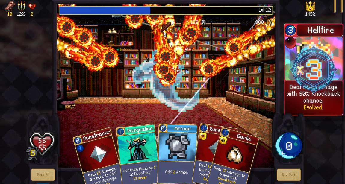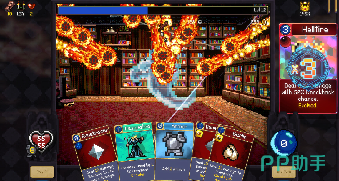 游戏采用第一人称视角构建沉浸式地牢探险体验。每局开局均始于一座氛围古拙的基地村庄,玩家可自主选择不同主题的地下城入口——从幽暗墓穴到熔岩回廊,每一处场景均以精心编排的像素艺术呈现。这些地下城并非线性通道,而是具备明确层级结构的立体迷宫,关卡难度随深度递进,有效强化了未知探索的紧张感与成就感。其战斗系统的核心创新在于“顺序触发式连击”:所有卡牌必须按法力值由低到高依次打出;后置卡牌不仅能激活前置卡牌,更能将其基础效果倍化——常见增幅为2倍或3倍,极限组合甚至可触发指数级伤害跃升。