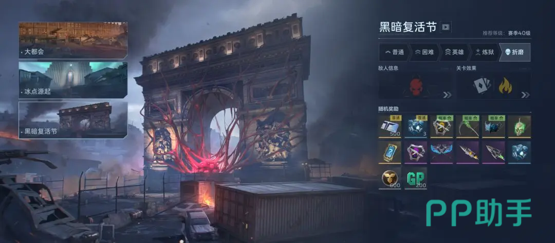该模式延续《逆战》IP核心战斗基因,采用4人固定队制协同抵御持续刷新的丧尸洪流。每轮挑战需按序推进三阶段区域,最终决战高阶Boss。通关后获得金币可在专属商店兑换属性强化模块、战术补给包及队友支援武器。当前开放三张主题地图:大都会、暗黑复活节、冰点起源;各图均设普通、困难、英雄、炼狱、折磨五档难度梯度。随难度提升,敌方单位种类增加、基础属性强化,并在折磨难度触发特殊增益效果(如抗性提升、群体狂暴等),对队伍配装与走位配合提出更高要求。