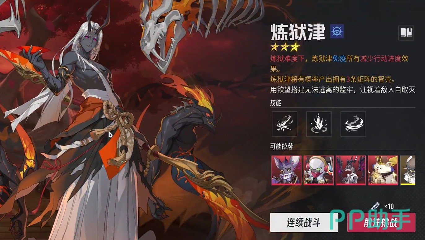 炼狱津的关键技能为“焚欲”与“欲火烈旋”。当队伍中存在与其同相性的角色且该类角色累计行动四次时,“焚欲”将被触发,释放一次造成600%伤害的反击技,并为目标附加“孽生”效果。每叠加一层“孽生”,角色所承受的伤害将提升40%,这一机制极易导致团队爆发性减员。