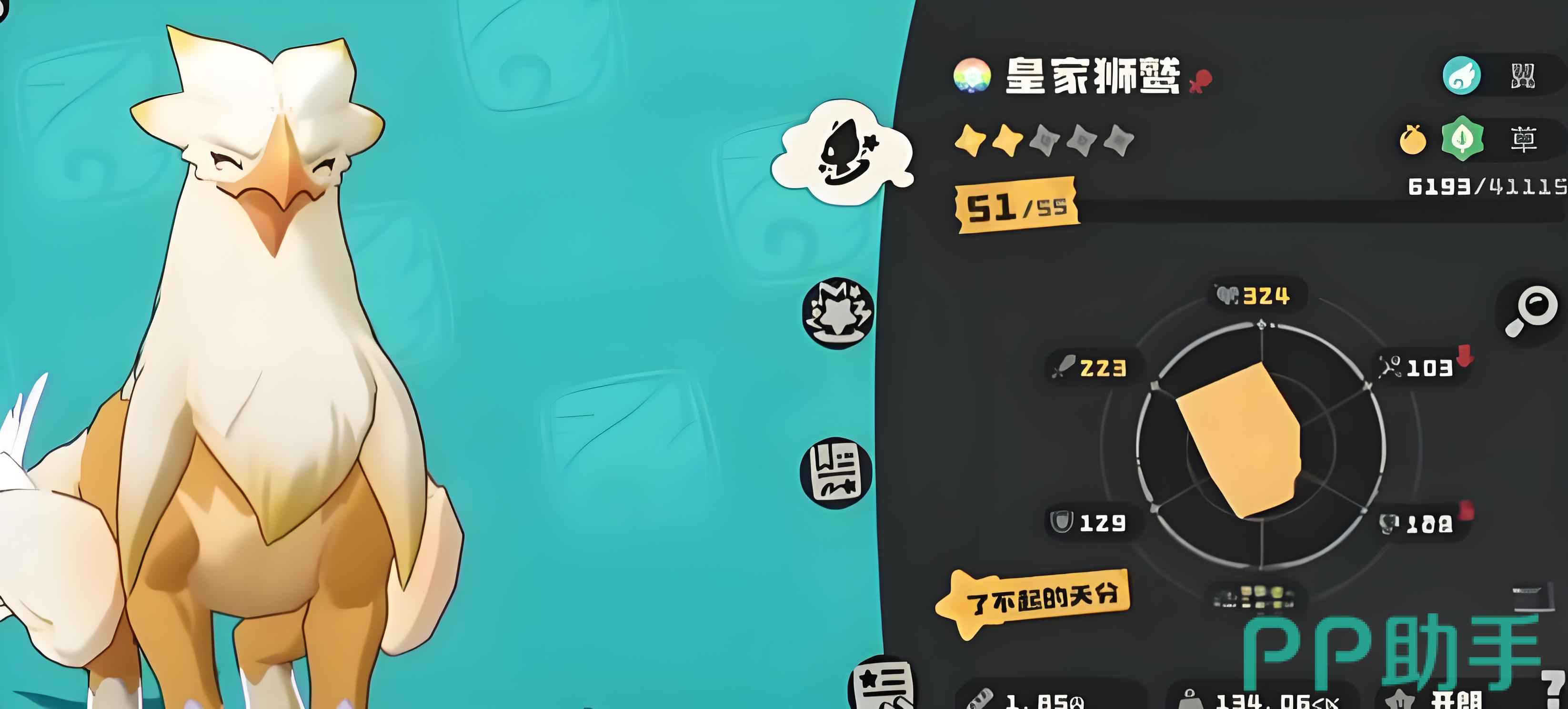 月光狮鹫属于高难度挑战型精灵,必须通过战斗击败后才可尝试捕捉,其实力接近于BOSS级别。在对战状态下,该精灵不仅基础数值远超常规宠物,同时具备强力的主动技能与被动机制,整体作战表现非常强势,因此对玩家队伍配置提出了更高要求。