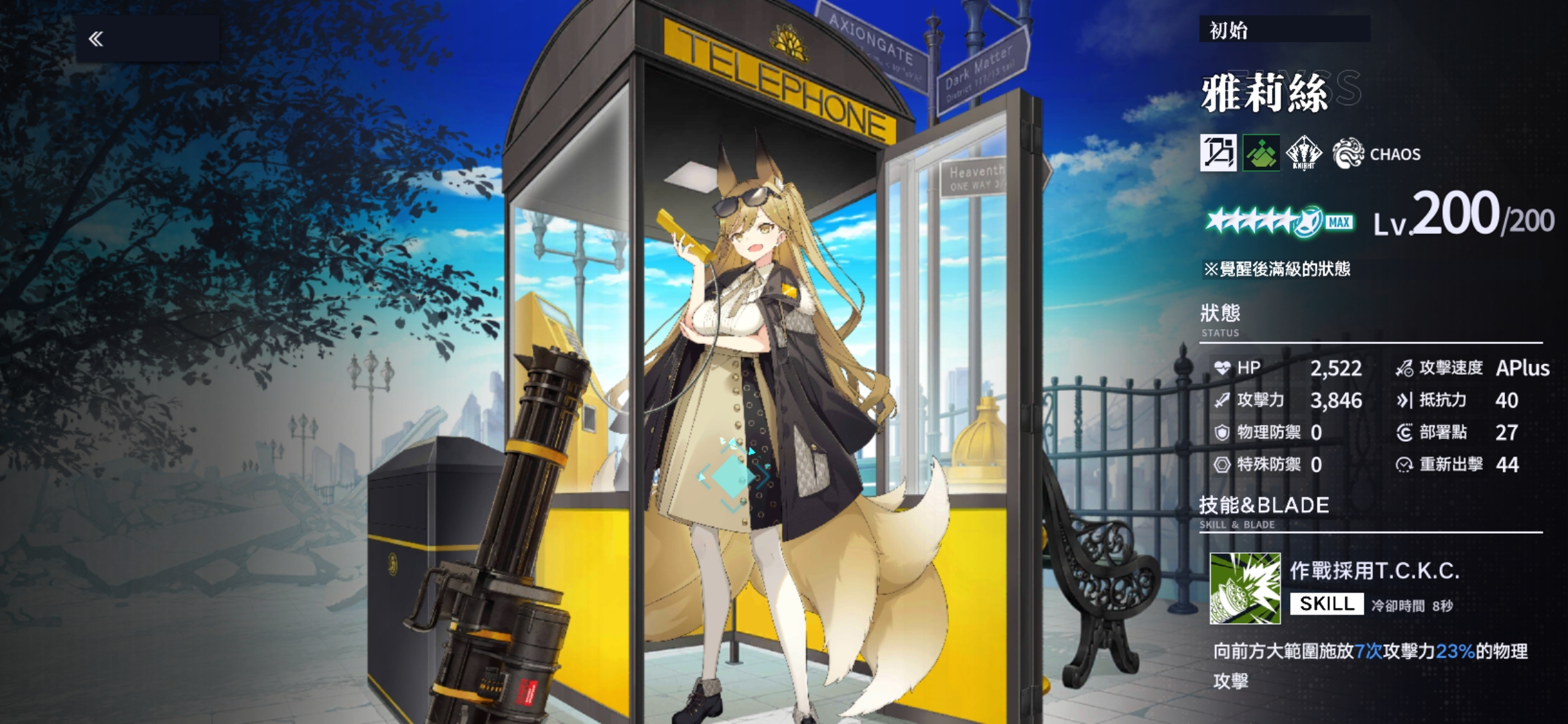 雅莉丝属于擅长群体压制的远程角色。虽然技能冷却略长,但她的攻击覆盖范围广,能够持续对多个敌人造成连击伤害,清怪效率非常出色。BLADE技能设计独特,进场时释放一次强力打击,退场阶段再追加十余次范围攻击,实现前后双重压制。被动技能使其在战斗开始时自带半格BLADE能量,有助于更快进入输出节奏。凭借强大的群控与范围输出能力,雅莉丝在推图和多人协作战斗中表现稳定,是队伍中的核心清场担当。
