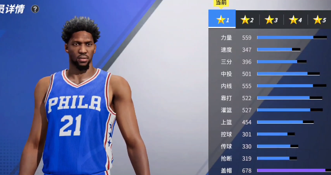 建议在中锋位置上可以选择开服就赠送的恩比德!这一个球星拥有紫色盖帽,还有紫色篮板属性。在实战的过程中拥有出色的盖帽能力,可以有效限制对手的内线进攻。还有强大的篮板保护,让球员可以掌控第2次的进攻机会。无论是单防还是协防,都可以支撑起球队的内线防线。