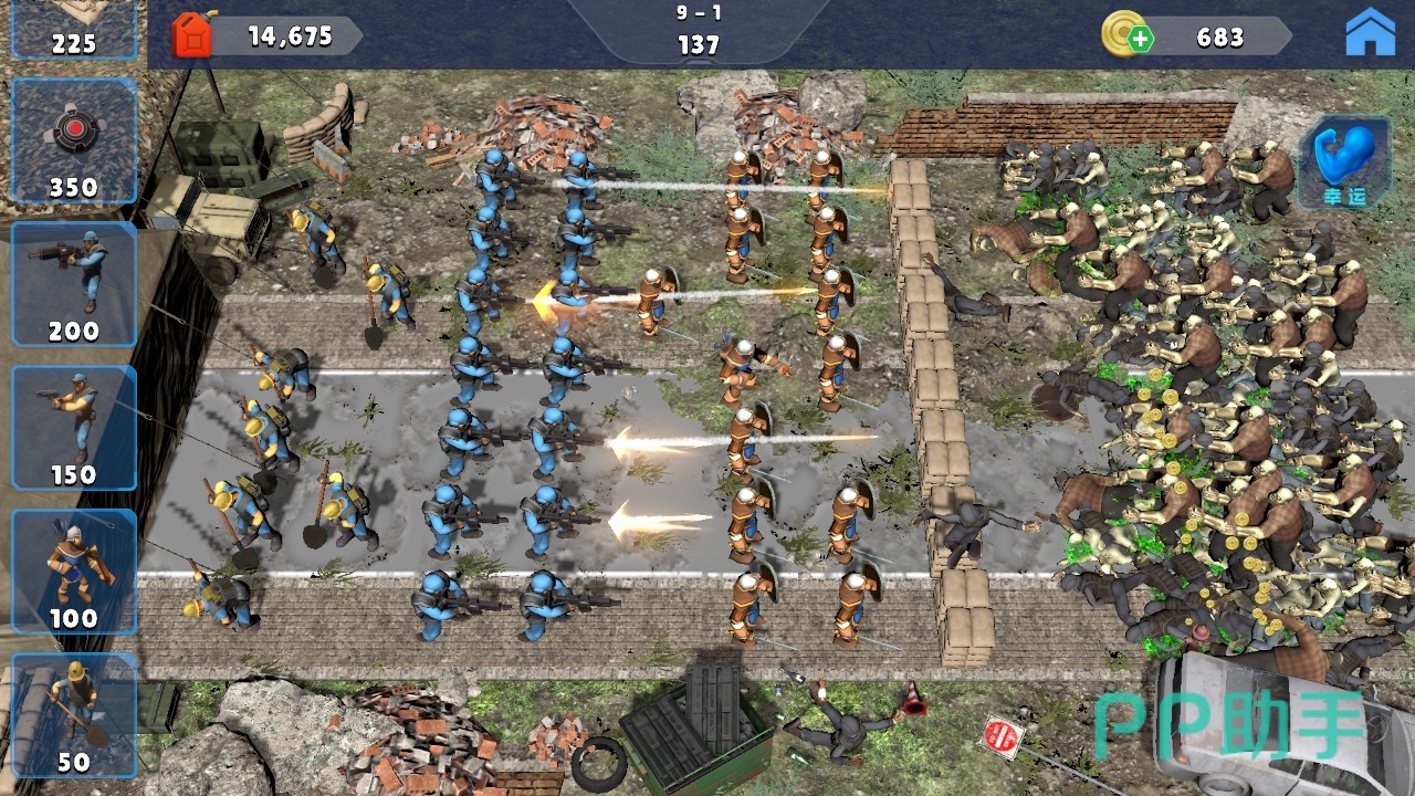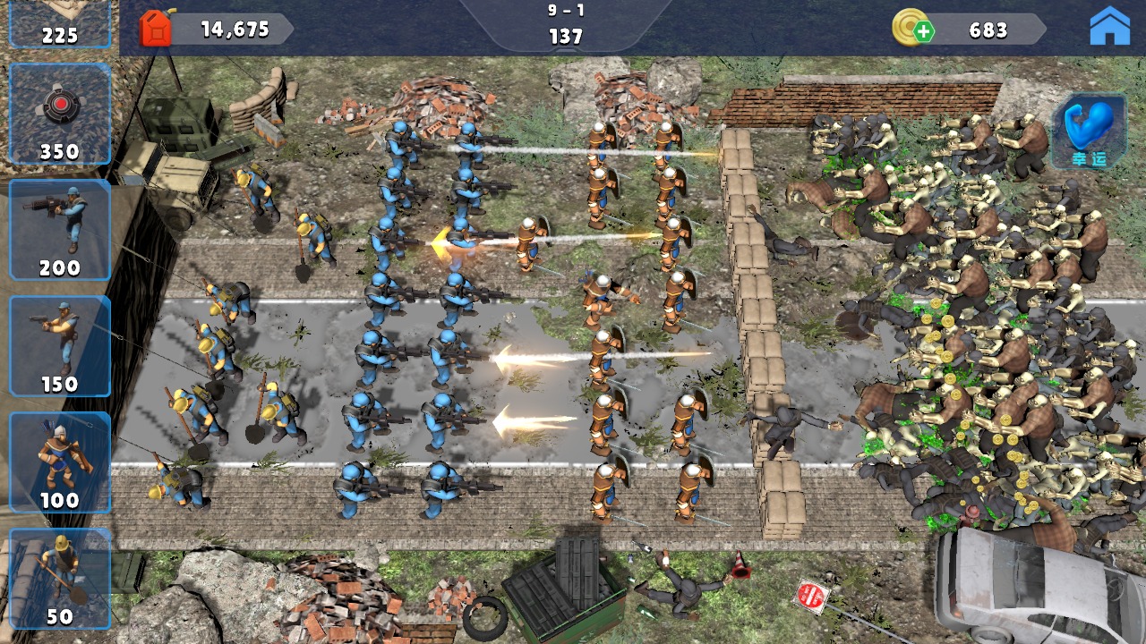 当你美好的家园被僵尸入侵,该如何发起进攻,组织幸存者一起抵御,而且每一条轨道上,都有不同属性的僵尸前进攻击,需要玩家培养兵种,快速的部署计划,运用手中的武器进行射击,激烈的战争场景,能够激发玩家内心的热血,同时伴随背景音乐的响起,能够判断作战的节奏,提前做好防御准备。
