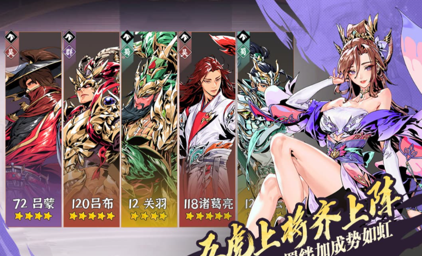 首推爆发控制型阵容:典韦、马超、张辽、诸葛亮、刘备。该组合以高瞬时伤害与强控场能力为核心,适合追求前中期快速压制、缩短战斗时长的玩家。其中典韦承担前排承伤职能,需置于阵型最前方;马超与张辽为双物理核心输出,兼具一定生存能力,可部署于中排;诸葛亮作为法术输出位,身板较脆,建议安排在后排;刘备提供团队增益效果,强化整体作战效率。整套配置在PVE副本与部分PVP场景中均能实现高效清场。