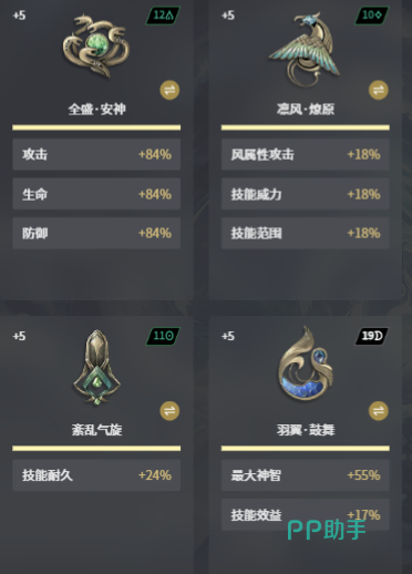 魔之楔的选择上,全盛安神是不可或缺的核心组件,提供84%的攻击力、84%的防御力以及84%的生命值加成。这一组合大幅增强了达芙涅的生存能力,使其在近身作战中更加稳定,无论使用何种武器都能安心站场输出。其次是凛风燎原,提供18%风属性攻击、18%技能威力和18%技能范围,完美契合风系输出体系。特别是搭配突击枪时,风属性弓类加成与技能威力协同作用,显著提升单体打击效率。