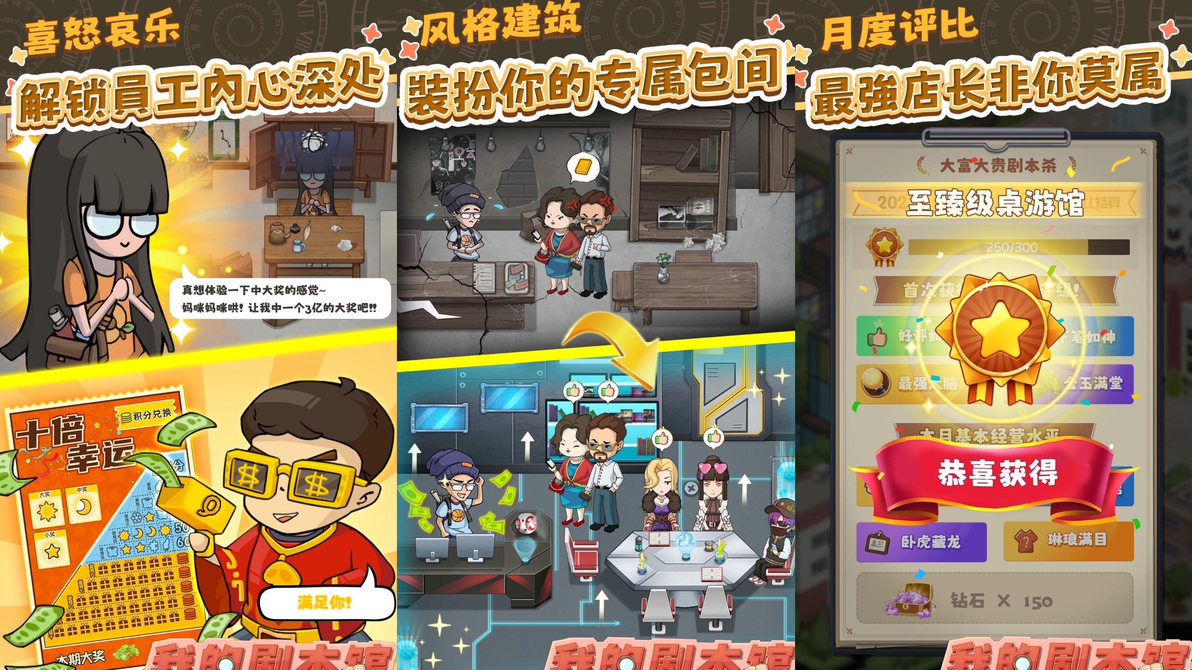 你是一家城中村剧本杀店的老板,你需要将你的剧本杀店经营起来。首先就是各种风格的装修,有工业风,古堡风,童话风,新中式等等,主题越多,客人越感兴趣!当然剧本杀店最需要的就是本子,所以不要忘记雇佣写手为你写剧本哦!作为一家剧本杀店,DM,收银员,还有清洁工以及迎宾,npc都是必不可少的组成部分。除了这些,客人的留言建议,店里的零食服装等等都需要你来做好安排。服务越好,客人越满意,才会生意兴隆,店才会越做越大!加油吧!老板!