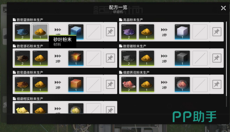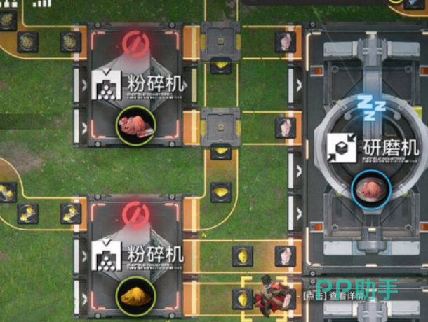 采集所得砂叶不可直接使用,须经加工转化为“砂叶粉末”方可投入合成或基建升级。研磨机为唯一加工设备,单份砂叶可产出3份粉末,单次加工耗时2秒。为最大化处理效率,建议配置三台研磨机并联运行,并通过传送带统一供料;注意调节传送带分流逻辑,确保各设备负载均衡,避免空转。另有特定干员具备“研磨效率提升”特性,可使单台设备产出速率提高10%–15%,推荐将其编入相关基建岗位。
