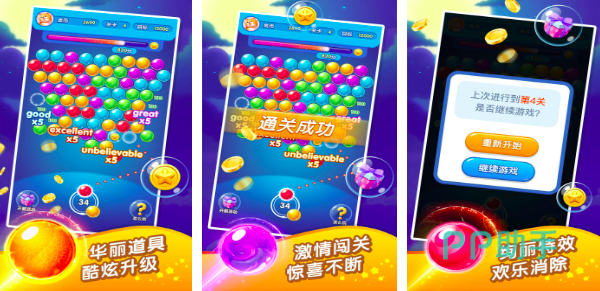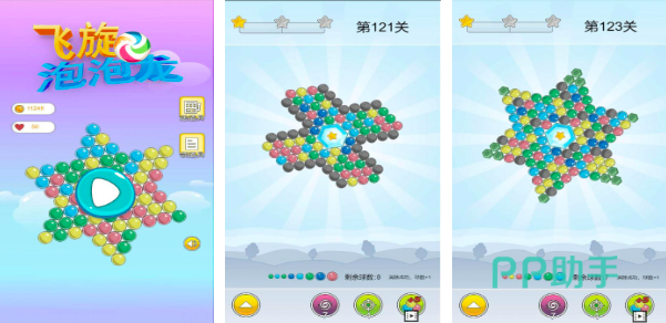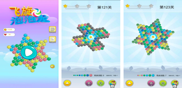 飞旋泡泡龙,似乎在玩一个很新的消除模式,在这里摒弃以往的三角形矩阵、方形矩阵。加入了更多全新化的设定,大多数泡泡的排布,以飞镖模式出现,多达500+的关卡,十几种不同的泡泡功能设定,以及四大神奇道具,都能够让你的过关更加顺利。而且不少泡泡矩阵还自带旋转模式,更加考验玩家们的策略和射击准确度。