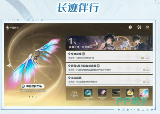 长期成长机制“长迹伴行”依托日常任务积分兑换,当前可领取奖励包括:10次常驻抽、10次限定角色券、全新印章称号及典藏级滑翔翼皮肤(永久免费)。该活动持续运营,后续将动态扩充可兑换内容并提升积分上限,构建可持续资源积累路径。