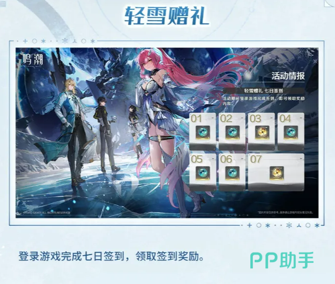 福利体系覆盖全周期用户需求。“未署名的祝福”登录活动(2月17日—3月19日)每日上线即领1600星声及限定头像框,折合常驻抽卡10次,为新手开荒与老玩家补卡提供坚实资源基础。剧情任务“星炬予你”在通关主线第三章第三幕“远航星”后即可领取漂泊者专属服饰学院套装(含男女通用外观)及配套头像框,单任务双外观设计显著提升获取效率。签到活动“轻雪赠礼”连续签满7日可获5次常驻抽+5次限定抽,总计10次抽取机会,助力角色养成节奏平稳推进。