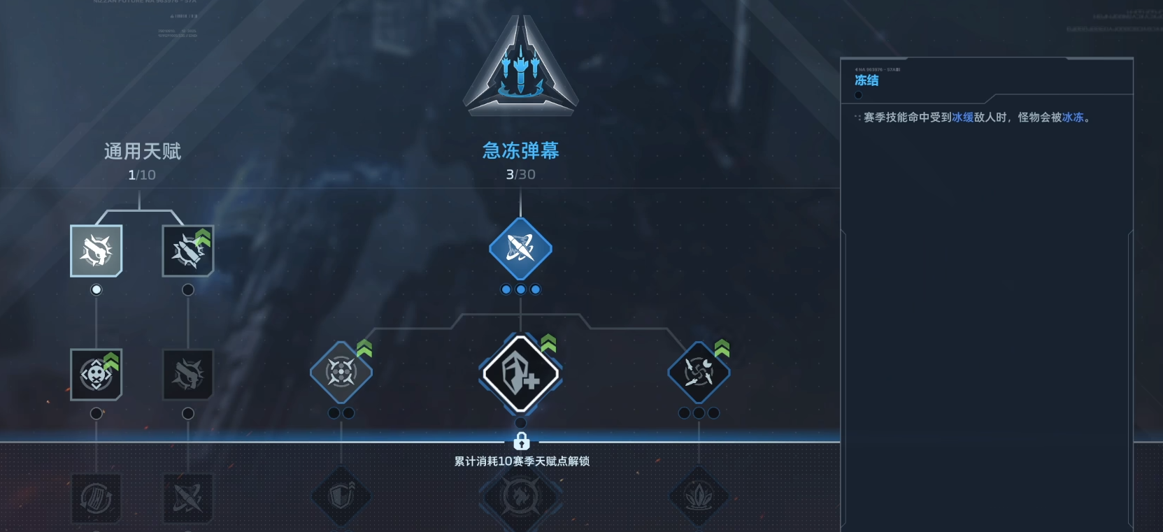 在《逆战:未来》中,天赋系统采用赛季制重置机制——每赛季开启时,所有角色的天赋树将清空归零,玩家需依据当季作战目标重新规划加点路径。初始阶段会分配基础天赋点,后续点数通过提升赛季等级获取:每升一级,即获得1点赛季天赋点。整套天赋体系划分为两大核心方向——「急冻弹幕」与「机械之舞」,二者定位明确、互不重叠:前者强化范围压制与群体杀伤能力,后者专注单体持续输出与高频率打击效率。