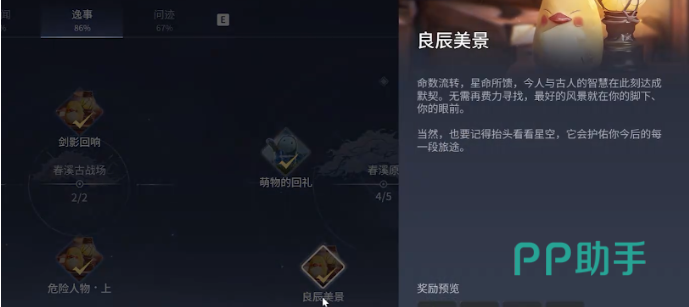 综上所述,“良辰美景”属于《王者荣耀·世界》中设计精巧的轻量级探索任务,强调空间观察、道具交互与时间管理能力。整个流程无战斗压力,侧重环境叙事与沉浸节奏。完成该任务可稳定获得限定资源奖励及【良辰美景】专属称号,适合全阶段玩家体验。建议优先完成以解锁更多区域互动内容。