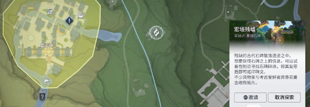 任务起始点位于宏垣残墟区域。玩家需先抵达该地图东南侧小径入口,建议使用滑板提升移动效率。沿小路持续前行,途中可见一块显著巨岩,其前方分布若干低等级敌对单位。清除全部小怪后,即可与NPC椋尘对话,正式接取【良辰美景】逸事任务。