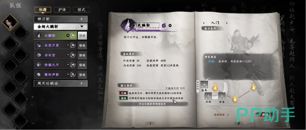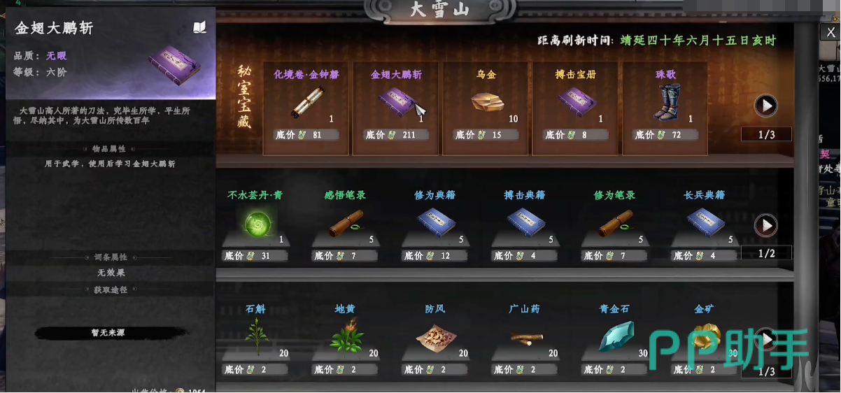 在商店的武学列表中即可找到“金翅大鹏斩”。但该秘籍并非免费开放,需要消耗一定数量的门派贡献值或指定游戏货币方可兑换。因此,建议玩家提前完成门派任务、积累资源,确保在目标秘籍出现时能第一时间将其购入。