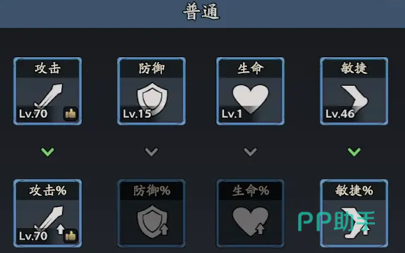 阵法石配置上,因其依赖高输出进行清场,推荐使用攻击命中与攻击暴击类型,以最大化伤害稳定性与爆发能力。性格设定推荐“暴躁”,该性格专精于提升暴击表现,契合其输出定位。训练方向主攻攻击成长,辅以生命值强化;研究路线可参考下图所示方案进行规划。