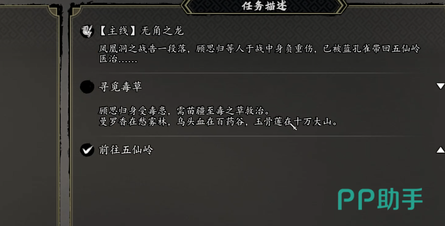 “无角之龙”段落节奏更为密集,涵盖地牢探索、线索调查与精准刺杀三大模块,各环节存在严格依赖关系。仅需严格遵照主线提示推进,即可规避内容遗漏。通关后可收获多部稀有心法、锻造图纸及【五仙教令牌】,为终局决战积累战略资源。