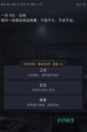 本作采用“真实生存—社会观察—悬疑解构”三层递进结构。初始阶段聚焦基础生存逻辑:2500元如何分配?哪类岗位匹配当前技能?合租室友关系该如何维系?随着周目推进,系统逐步释放城市暗面线索——非法用工、灰色中介、隐性歧视、信息茧房等议题自然融入任务链。每一次关键抉择不仅即时改变当日收支与声望,更会沉淀为后续周目的隐藏参数,影响NPC态度、事件触发概率乃至结局分支走向。