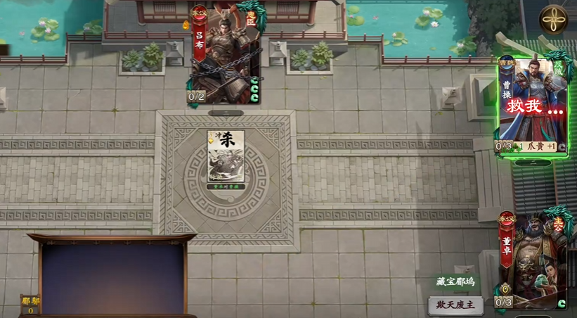 第23关:推荐使用董卓通过此关。先从藏宝库中装备减一马,提升行动优势。接着利用技能“欺天废主”交换曹操与吕布的站位顺序,调整完毕后直接出杀即可完成斩杀,操作简单且稳定。